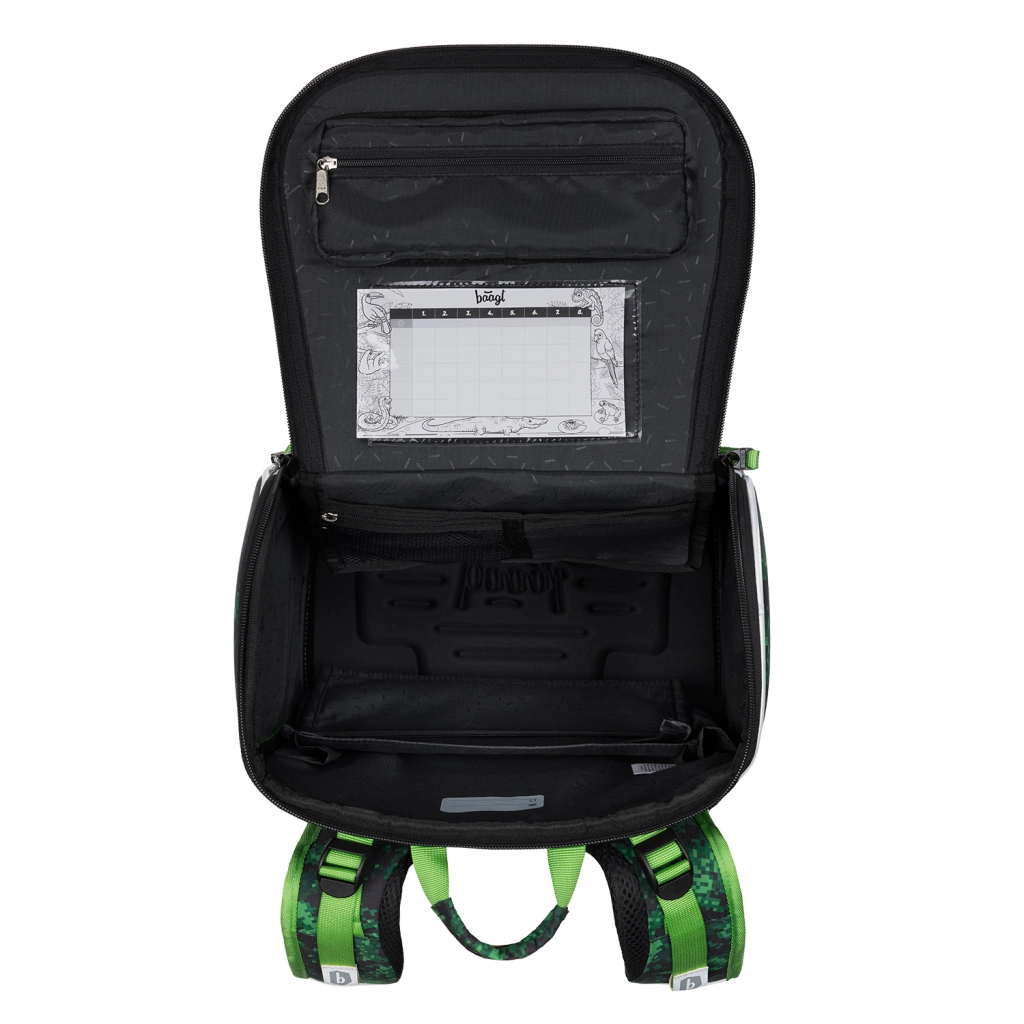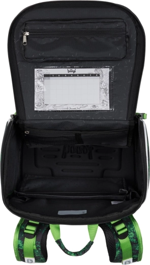 Unutra se nalazi pregledan organizer za školski pribor i poseban termo-džep koji duže održava užinu svježom. Dizajn upotpunjuju reflektirajući elementi za bolju vidljivost i vrlo pouzdani YKK zatvarači. Jedinstveni sustav izmjenjivih znački omogućuje djeci da u svakom trenutku promijene izgled prema raspoloženju i interesima. Aktovka je izrađena od recikliranog, vodoodbojnog materijala, ima volumen 21 l i nosivost 7 kg.
