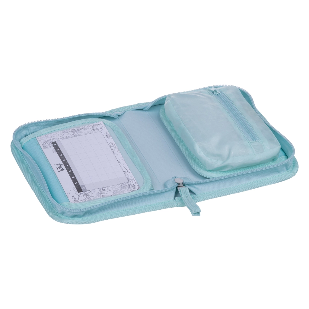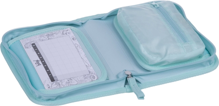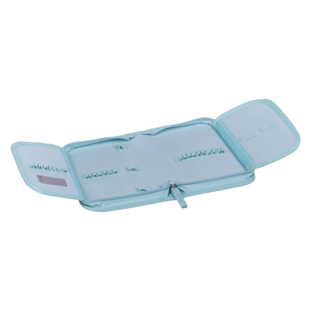 Prostor je osmišljen tako da primi pastele, olovke i flomastere, uključujući i trokutaste oblike. Unutra ćete naći džepića za sitnice i praktičan prozorčić za raspored sati. Pernica dolazi bez punjenja, a izrada od recikliranog materijala podupire održiviji odnos prema prirodi.