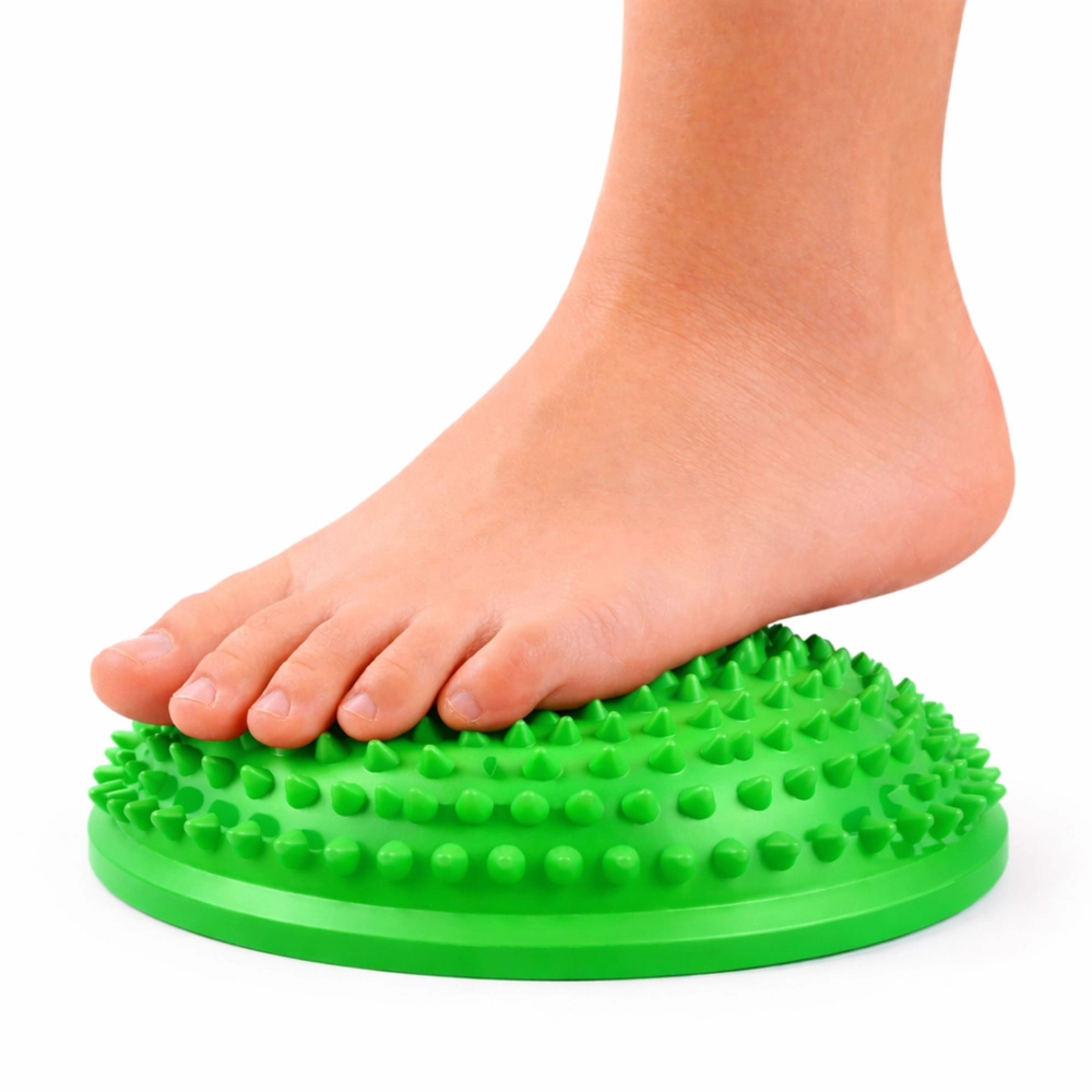 Senzorička polukugla kombinira balansni trening i ciljanu stimulaciju stopala. Polukuglasti oblik s gustim mekim ispupcima pruža ugodnu masažu koja potiče cirkulaciju krvi, aktivaciju mišića svoda i bolju propriocepciju. Prikladna je za kućnu upotrebu, fizioterapiju, vrtiće i škole te za vježbe korekcije držanja.