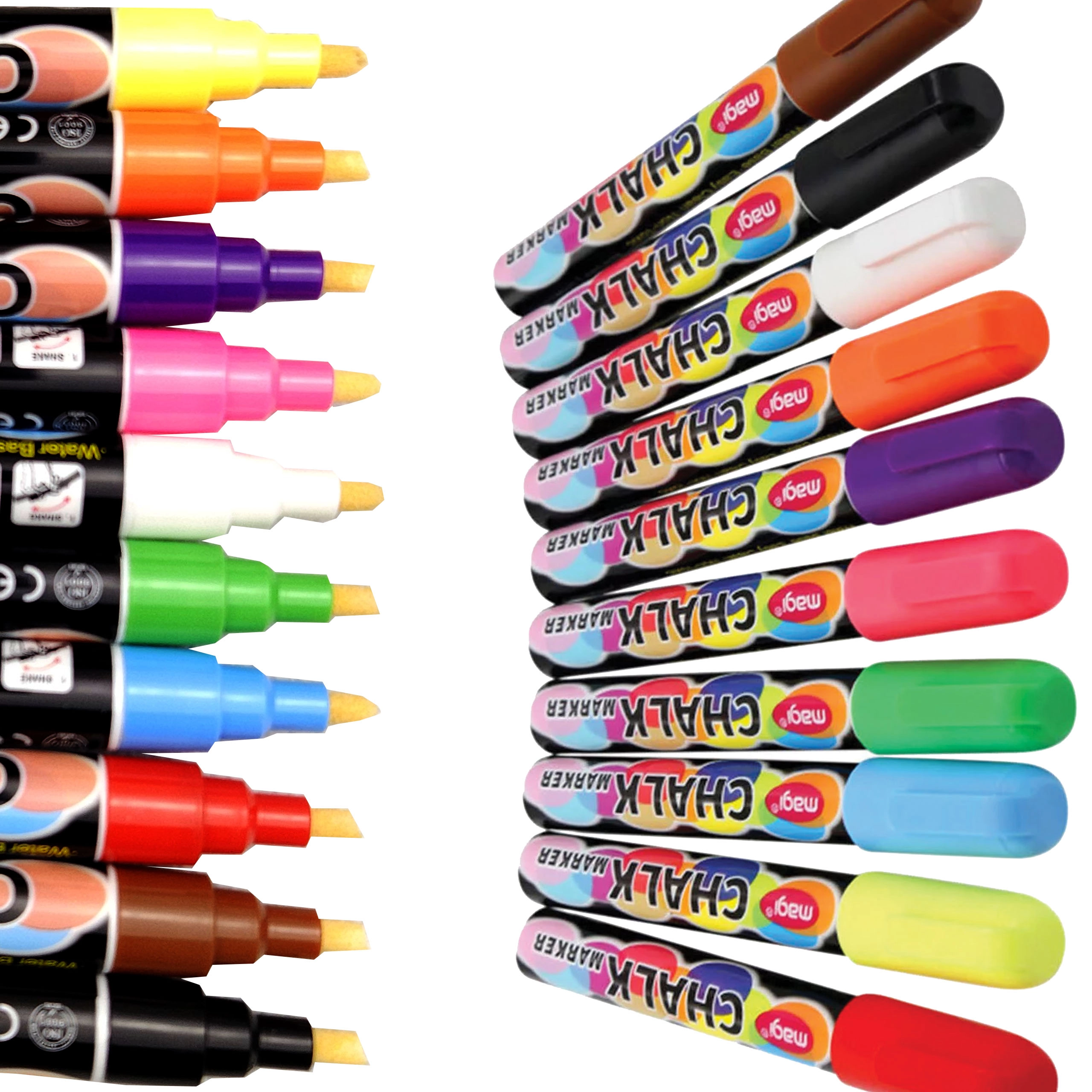 Set krednih markera za ploče i staklo, 10 boja, 6 mm, brisivi