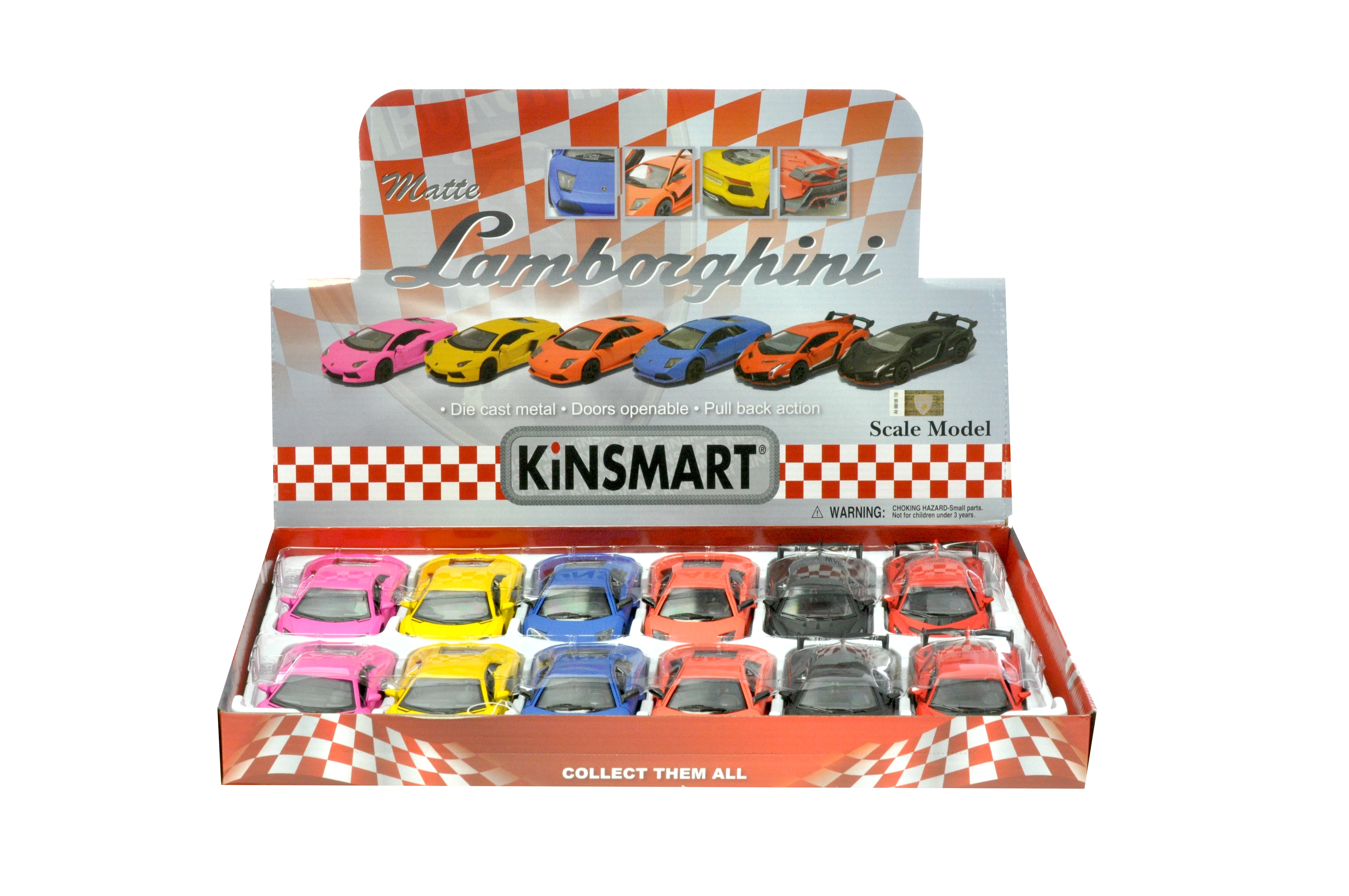 Otkrijte precizno izrađen model sportskog automobila Kinsmart LAMBORGHINI u mjerilu 1:36, koji će oduševiti djecu i kolekcionare. Metalna izvedba s mat lakom, pull-back povratni pogon za brzu vožnju nakon navijanja i otvoriva vrata za autentičan doživljaj igre. Idealna veličina za igru i izlaganje, dostupan u varijantama AVENTADOR, VENENO i MURCIÉLAGO.
