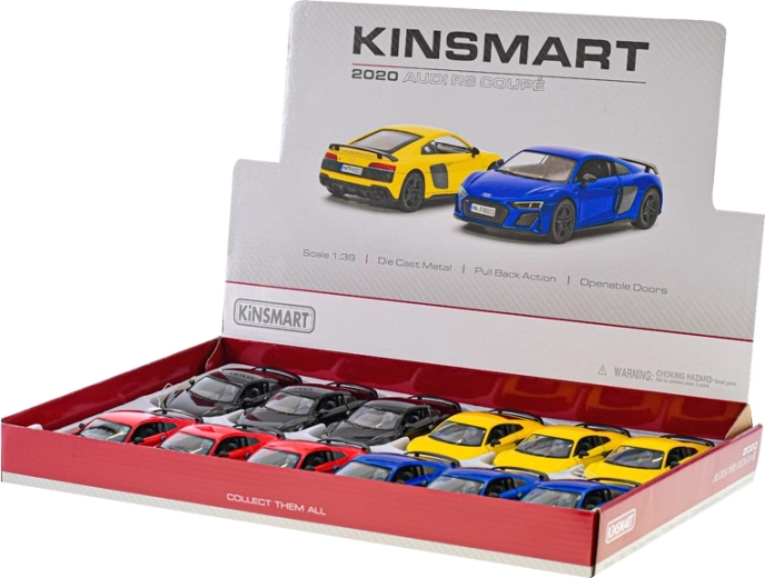 Uživajte u realističnoj vožnji s legendarnim sportskim automobilom AUDI R8 COUPÉ u licenci Kinsmart. Model u mjerilu 1:36 ističe se preciznom izradom, autentičnim detaljima karoserije i otvarajućim vratima, koja pojačavaju doživljaj igre i izlaganja u vitrini.