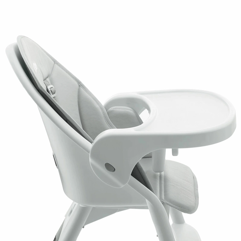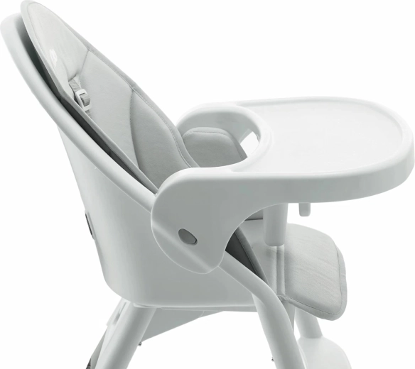 Podstavljeni umetak je mekan, vodootporan i lako se čisti, pa je održavanje nakon jela brzo i jednostavno. Odvojiva plohapodnoš od sigurnih, certificiranih materijala služi kao pladanj i praktičan odbojnik. Ispravnom sjedenju pridonosi oslonac za noge, dok 5-točkasti sigurnosni pojas pouzdano drži dijete na mjestu.