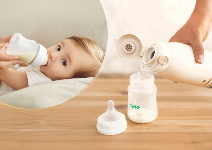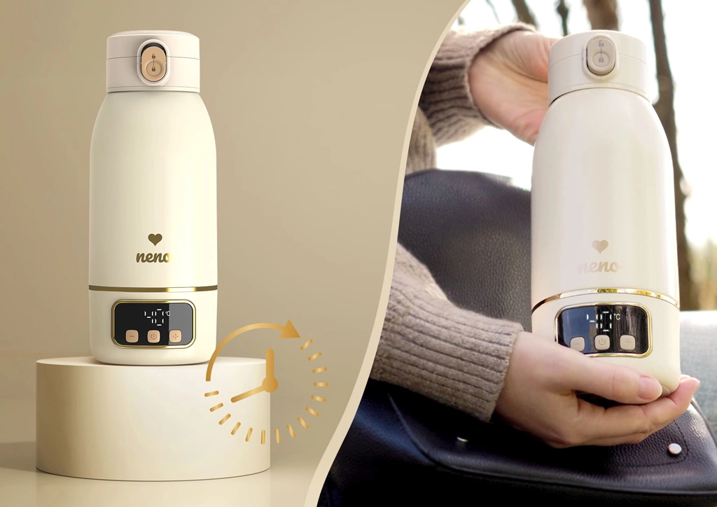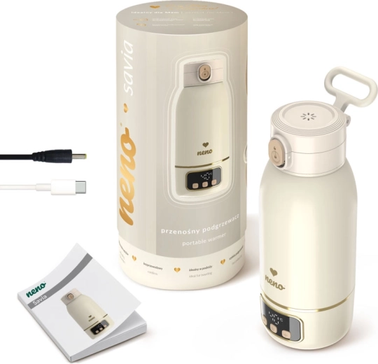 Neno Savia je moderan, bežični grijač koji olakšava hranjenje bilo kada i bilo gdje. Za samo 3 minute zagrije 150 ml vode na približno 40 °C i pouzdano održava postavljenu temperaturu u rasponu 35–55 °C. Zahvaljujući izdržljivoj konstrukciji, brtvenom poklopcu i sigurnosnoj blokadi protiv slučajnog uključivanja, prikladan je za putovanja, automobil i svakodnevne šetnje.