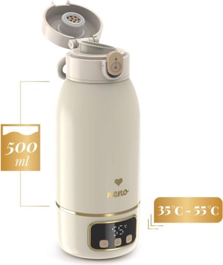 Putujte bez briga s prijenosnim grijačem Neno Savia koji brzo zagrijava mlijeko ili vodu, održava stalnu temperaturu 35–55 °C i na jedno punjenje omogučuje do 8 zagrijavanja. Zahvaljujući kompaktnim dimenzijama, bežičnom radu, nepropusnom poklopcu i kapacitetu od 500 ml idealan je za izlete, kolica pa čak i za palubu zrakoplova.