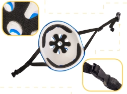 Ova lagana i udobna kaciga sa setom štitnika pruža djeci sigurnost pri svakodnevnim vožnjama. Vanjska školjka od izdržljive ABS plastike i unutarnja EPS ispuna učinkovito upijaju udarce, dok više ventilacijskih otvora održava glavu u komforu.