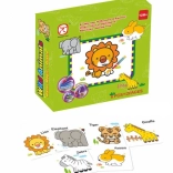 Umetni slagalica Životinje i vodeno bojanje idealna je kombinacija za razvoj mašte i fine motorike. Djeca mogu uživati u šest različitih slika – zec, slon, žirafa, lav, zebra i tigar.