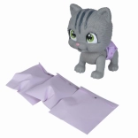 Set sadrži: mačiće od 15 cm s pelenom, funkciju piškanja, 3 iznenađenja i certifikat o usvajanju. Sve je zapakirano u elegantni papirnati okvir koji može služiti kao prijenosni dom. Poklon pribor zapakiran je u posebne vrećice.