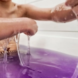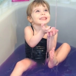 Glibbi pretvara kupku u ljubičastu svjetlucavu sluz, što djeci donosi potpuno nov doživljaj uobičajenog kupanja.