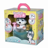 Uronite u svijet zabave s Psićem Husky Pamper Petz u kadi. Ovaj preslatki pasji prijatelj nudi djeci mnoge sate igre, tijekom kojih se mogu brinuti o svojim ljubimcima, kupati ih i paziti na njih kao na prava životinjica.