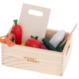 Set je odličan za samostalnu igru i zajedničko kuhanje s roditeljima: potiče koordinaciju ruka–oko, razvoj rječnika (nazivi namirnica, dijelova) i kreativnu ulogovnu igru. Estetski drveni sandučić pomaže održavati red i spreman je za brzo pospremanje.