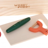 Ovaj drveni magnetski set za dječju kuhinju donosi realistično rezanje i guljenje bez opasnosti. Povrće prerežete sigurnim nožem, stavite na dasku, a nakon igre ga zahvaljujući magnetima lako spojite natrag. Djeca tako kroz igru usvajaju zdrave navike i razumiju princip magnetskog spajanja.