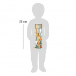 Postupno gradite i pažljivo izvlačite obojene valjke prema boji na kocki – ali pazite, kula se ne smije srušiti! Ova obiteljska balansirajuća igra donosi napetost i smijeh u svakom potezu te pritom prirodno potiče finu motoriku, koordinaciju ruka–oko i usredotočenost djece.
