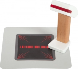 Drvena registra blagajna SMALL FOOT Fresh pretvara svaki dječji kutak u mali supermarket. Zahvaljujući integriranom kalkulatoru u okretljivom monitoru djeca lako izračunaju kupnju, otvaraju veliku ladicu s pretincima za novčiće i isprobavaju bezgotovinsko plaćanje vlastitom karticom i potpisom na pleksiglasu.
