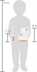 Integrirani kalkulator u okretljivom monitoru, rola potrganih računa i utor za karticu omogućuju djeci doživjeti stvarni tijek kupnje – od skeniranja robe do ispisa računa.