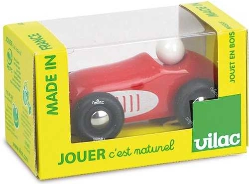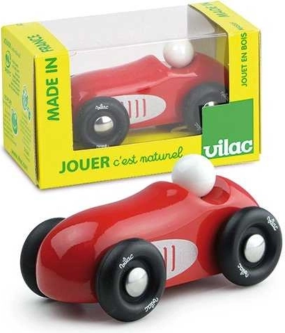 Stilski minijaturni trkaći autić od lakiranog drva razveselit će male i velike zaljubljenike u automobilizam. Ima masivne gumene kotače za glatku vožnju, čvrstu drvenu izradu i bezvremenski crveni dizajn. Odlično za igru i kao dekoracija. Proizvedeno u Francuskoj.