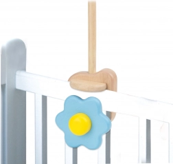 Elegantni drveni držač za vješanje dječjeg vrtuljka dizajniran je za brzu montažu i čvrsto pričvršćivanje na ogradu krevetića. Masivno drvo osigurava stabilnost i dugi vijek trajanja, dok dekorativni element s cvjetićem daje krevetiću razigran izgled.
