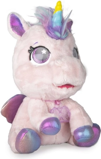 Interaktivni plišani poni koji će postati vaš najdraži prijatelj. Reagira na dodire i brigu s više od 30 zvukova i akcija – od radosnog rzanja do nježnog predenja. Zahvaljujući postupnoj preobrazbi u tri čarobne faze promatrat ćete kako mu raste šareni rog i kako se iz ponija pretvara u prekrasnog jednoroga.