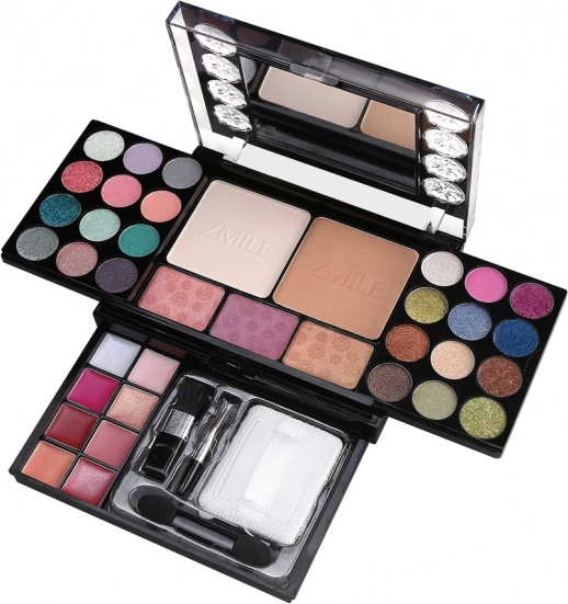 Svestrana kozmetička paleta ZMILE Diamonds za svakodnevno i večernje šminkanje nudi 16 sjenila za oči, 8 kremastih sjajila za usne, 8 sjajnih kremi i 2 pudera. Praktično pakiranje s integriranim ogledalom i aplikatorima/kistom idealno je za putovanja, dermatološki testirano i ispunjava stroge EU norme.