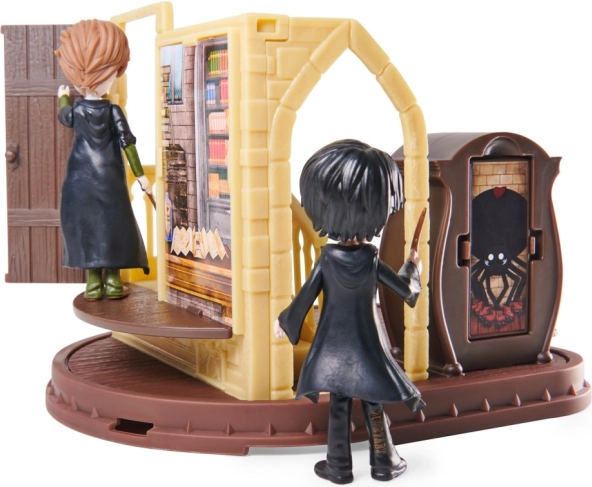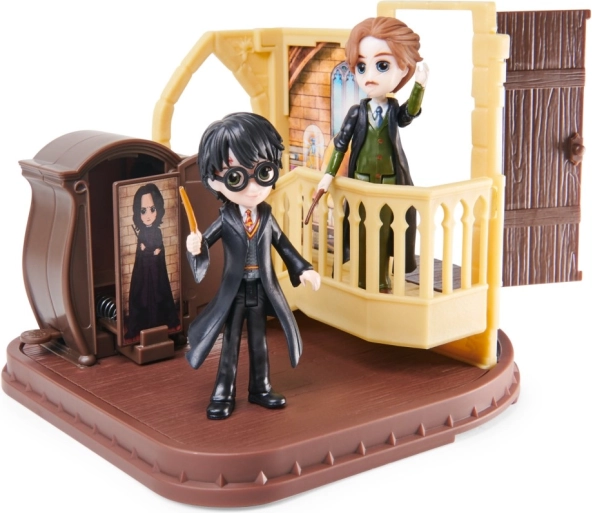 Ovaj sjajan igraći set inspiriran svijetom Harryja Pottera donosi djeci mogućnost da magiju dožive izbliza. Set sadrži figurice visine 7,6 cm koje djeci omogućuju igranje omiljenih scena. Dovoljno je pritisnuti bočnu stranu ormara i pojavit će se boggart, što igru čini interaktivnijom. Rotirajuća ploča i otvarajuća vrata predstavljaju dodatne elemente koji potiču dječju maštu.