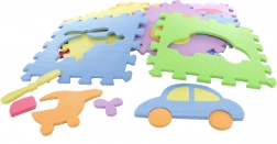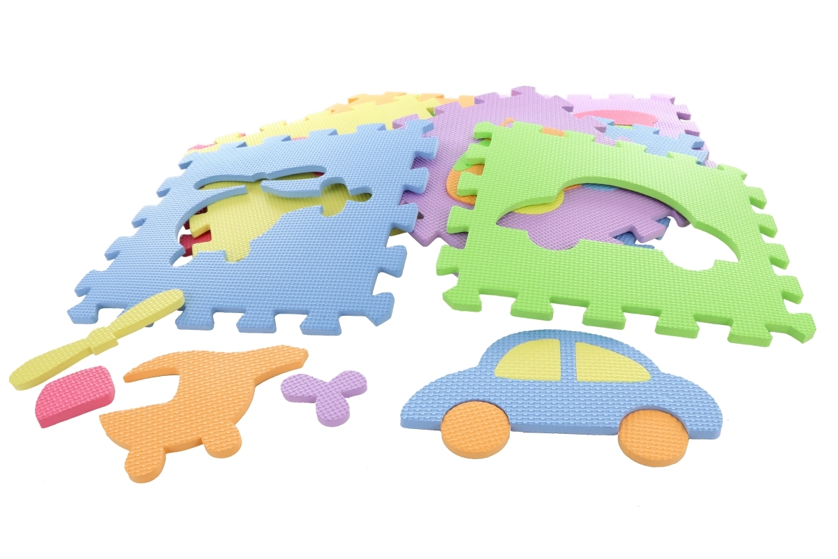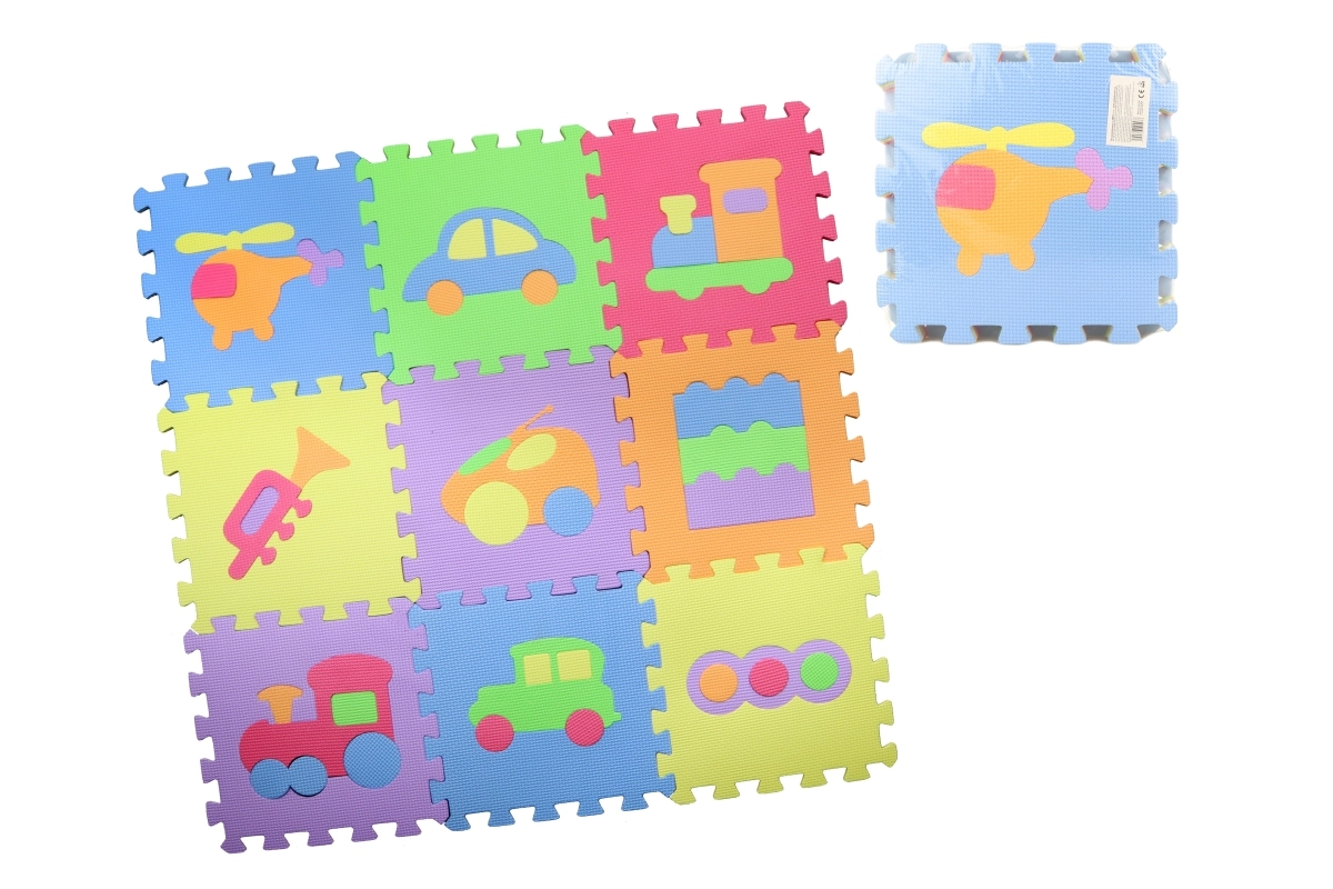 Ovaj set šarenih pjenastih puzzli djeci nudi ne samo udobnu i sigurnu podlogu, već i zabavan način učenja. Izvadivi oblici (prijevozna sredstva i drugi predmeti) potiču finu motoriku, prepoznavanje oblika i boja te razvoj mašte pri slaganju.