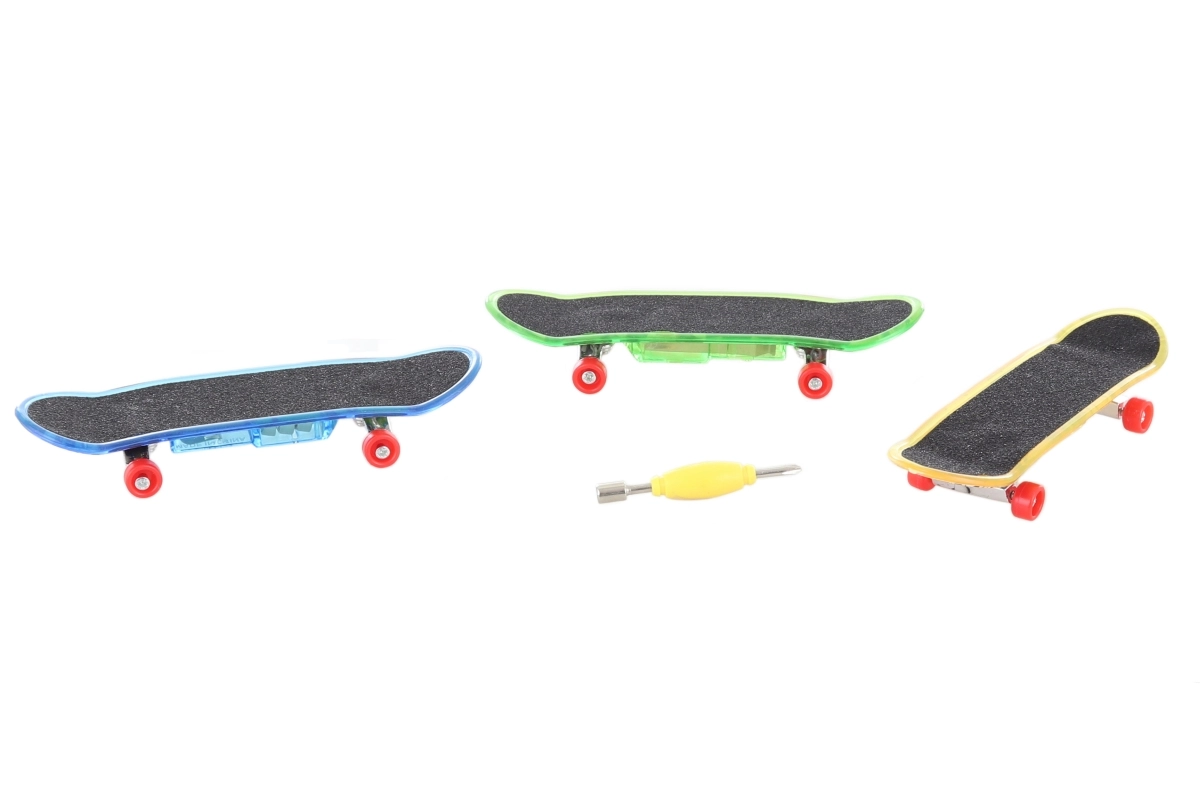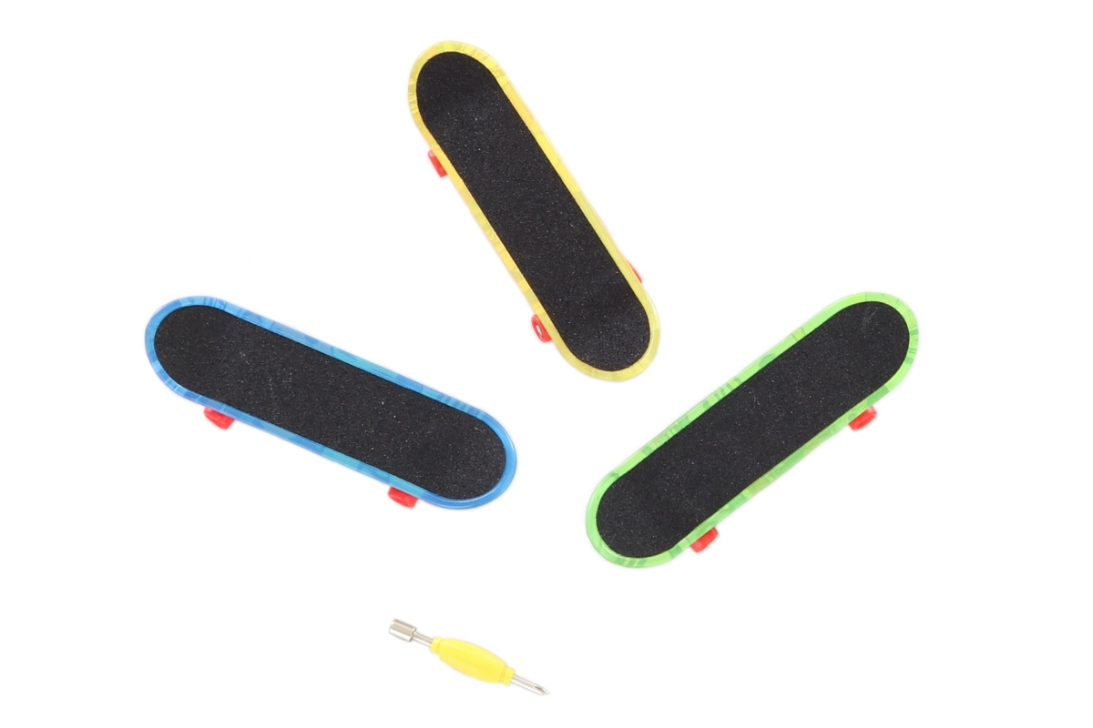 U pakiranju se nalaze 3 mini skateboarda i alat za zavrtanje vijaka. AG13 baterije su uključene, pa možete krenuti odmah.