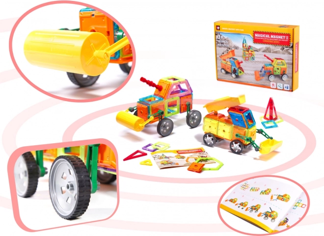Osigurajte pouzdanu i kreativnu zabavu za svoje dijete s raznovrsnim setom magnetnih dijelova, koji također uključuje kotače, spojke i naljepnice za postizanje jedinstvenih rezultata.