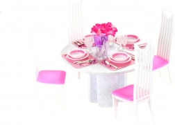 Stilizan blagovaonski set za lutke Glorie pretvara svaku dječju igru u realističnu gozbu. Sadrži okrugli stol, 4 stolice i 4 kompletna seta posuđa. Idealan za kreativnu igru i razvoj mašte djece od 3 godine.