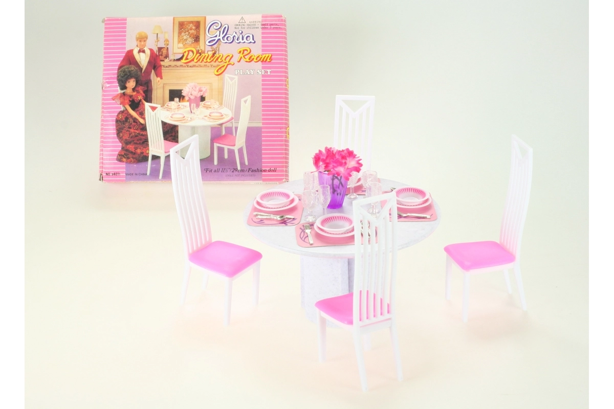 Stvorite savršeno postavljen stol za lutke. Blagovaonski set Glorie donosi sve što djeci treba za obiteljsku večeru ili svečanu proslavu – od posluživanja do udobnog sjedenja. Kvalitetna plastična izrada osigurava jednostavno održavanje i dug vijek trajanja.