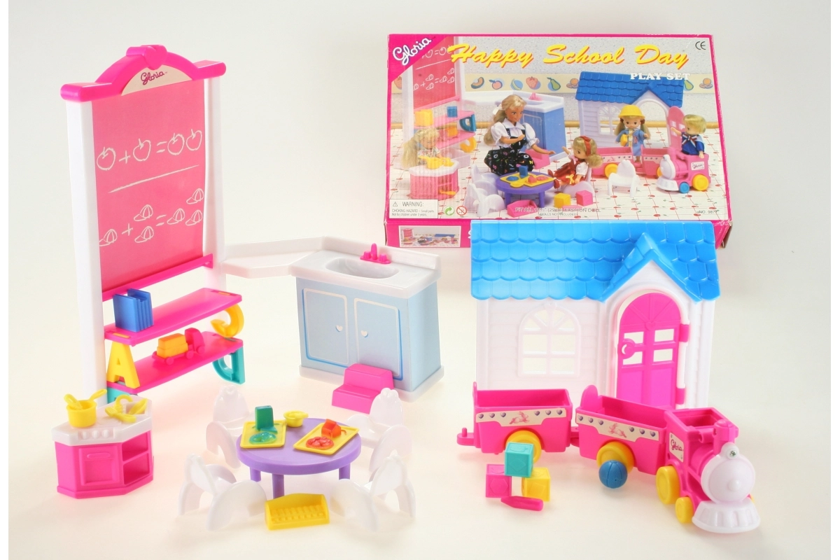 Proširite svijet igre kompletnim setom Glorie vrtić, koji nudi veliku ploču s policama, umivaonik, kućicu s vratima koja se otvaraju, dječje stolčiće i stolić, kuhalo, vlakić s tri vagona i mnoštvo dodataka i posuđa. Idealno za razvoj mašte, socijalnih vještina i fine motorike. Lutke nisu uključene u pakiranje.