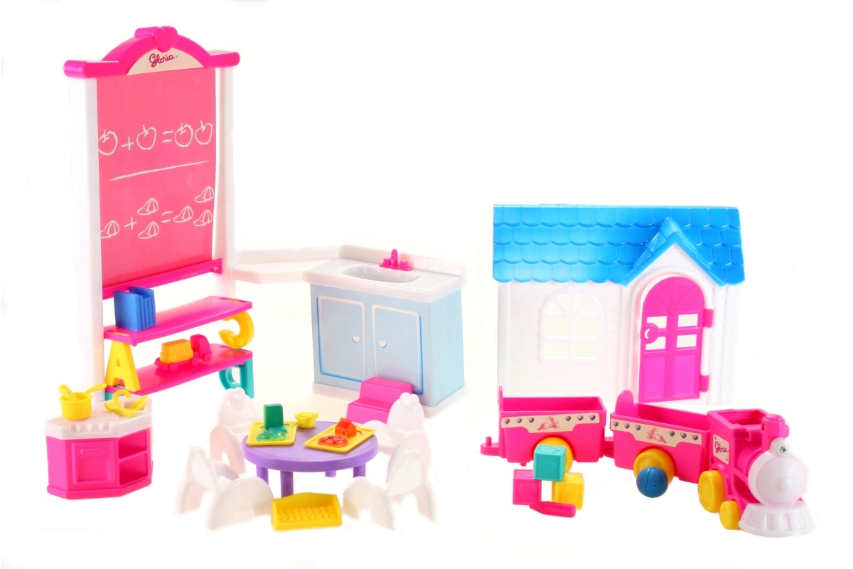 Stvorite savršeno okruženje za lutke s bogato opremljenim setom Glorie vrtić. Djeca će obožavati igru vrtića s realističnim elementima poput ploče s policama, funkcionalnog umivaonika i kućice s vratima koja se otvaraju. U setu su i vlakić, stolić, stolčići te niz sitnih dodataka, igračaka i posuđa – sve za kreativne scenarije i svakodnevnu radost u igri.