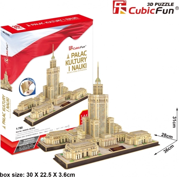 Uživajte u razrađenoj gradnji i otkrijte arhitekturu Varšave s realističnim 3D modelom Palače kulture i znanosti. Dijelovi od približno 3 mm debele pjene obložene laminiranim tiskanim papirom precizno se uklapaju, pa vam za sastavljanje ne trebaju ljepilo ni škare. Rezultat je stabilan model koji će se istaknuti na polici, radnom stolu ili u dječjoj sobi.
