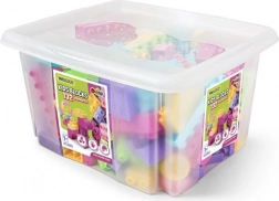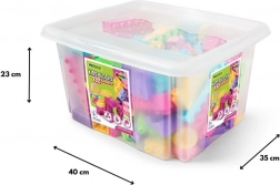Ovaj šarolik set građevinskih kockica donosi djeci sate stvaralačke zabave. Dijelovi su oblikovani tako da ih male ruke lako uhvate i spoje, što potiče samostalnu igru i zajedničko građenje s roditeljima ili braćom i sestrama. Prozirni spremnik s poklopcem na klik drži sve komponente na okupu i osigurava pregledno skladištenje.