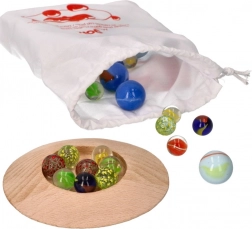 Ponesite svoje omiljene pikule kamo god idete uz praktičnu pamučnu vrećicu. Ovaj set sadrži 31 šarenu staklenu pikulu i drvenu udubinu, što ga čini idealnim izborom za igre u interijeru. Potiče kreativnost i razvija finu motoriku djece. Tko će biti najspretniji i ubaciti najviše pikula u udubinu?