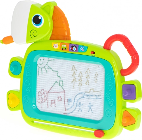 Magnetska ploča HOLA odličan je izbor za razvoj kreativnosti i fine motorike. Zahvaljujući četiri šarena područja nastaju crteži u bojama koje djecu zabavljaju. Jednim potezom klizača površinu obrišete i spremna je za nove ideje. Oblik konjića sa svjetlećom grivom i veselim zvukovima motivira djecu na igru.