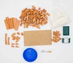 Doživi osjećaj pravih graditelja: promiješaj žbuku, namaži ciglice, sagradi kuću ili dvorac, potopi, osuši – i možeš graditi ponovno. Građevni set od pravih ciglica spojenih kukuruznom žbukom ne samo da vježba finu motoriku, već potiče i dječju kreativnost.