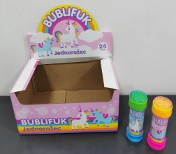 Bublifuk s motivom jednoroga izvrsna je opcija za bezbrižnu dječju zabavu. Kompaktna bočica zapremnine 50 ml stane u džep ili ruksak i spremna je u svakom trenutku stvoriti mnoštvo blistavih mjehurića. Siguran sastav i jednostavna upotreba čine ga idealnim dodatkom za igre u vrtu, parku i na proslavama.