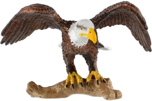 Ova kvalitetna plastična figurica prikazuje nacionalnu pticu SAD-a u tipičnom stavu s bijelom glavom i žutim kljunom. Čvrst materijal i precizno bojenje jamče dugotrajnost i realističan izgled koji potiče dječju maštu i učenje o prirodi.