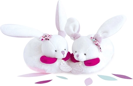 Preslatke dječje patice s motivom zeke u poklon-kutiji za bebe od 6–12 mjeseci. Patice drže nožice toplima i istodobno pružaju mekanu udobnost, razigran dizajn i tihu stimulaciju zvečke. Idealno kao poklon za novorođenačku opremu.