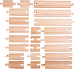 Visokokvalitetna izrada drvenih tračnica osigurava sigurnu igru i lako sklapanje različitih željezničkih trasa.