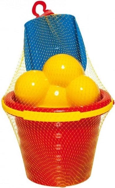 Homokozó játékszett kis építőknek, amely mindent tartalmaz, amire a gyerekeknek szükségük van a strandon vagy a homokozóban. Tartalmaz egy vödröt, egy lapátot és egy formát tartós műanyagból. Könnyű és biztonságos kialakítás, praktikus hálóban csomagolva. Különböző színek és minták az aktuális kínálat szerint.
