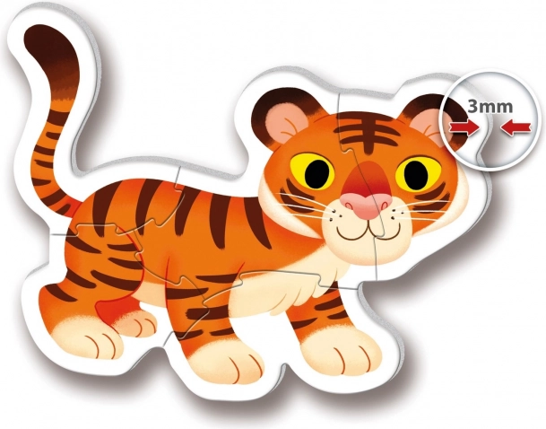 A készlet négy önálló kirakót tartalmaz, közkedvelt szafari állatokkal. A különböző darabszámnak (2, 3, 4 és 5) köszönhetően a gyermek fokozatosan szerez magabiztosságot és örömöt a kirakásban. A nagy, masszív, 3 mm vastag elemek a kisgyermekek kezéhez igazodnak, és könnyen kezelhetők.