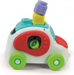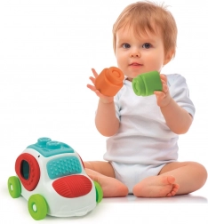 Szórakozás a beillesztős kisautóval. A CLEMMY kockáknak köszönhetően a gyermek megépítheti első tornyait és építményeit. A különböző formák beillesztése támogatja a finommotorika fejlődését, és a gyermek megtanulja felismerni a geometriai alakzatokat és a színeket. A kockákkal való játék fejleszti az érzékelést, a kézügyességet és a térbeli tájékozódást. A kisautó formájú műanyag doboz praktikus a kockák tárolásához, és a lyukakkal ellátott tető lehetővé teszi, hogy a gyerekek a megfelelő nyílásokba helyezett formákkal gyakorolják a logikát és a finommotorikát. Csomag tartalma: 8 színes kocka és 1 műanyag kisautó. Alkalmas 6 hónapos kortól. MEGJEGYZÉS: A kockák vízben való játékhoz is használhatók, és mosogatógépben moshatók. A BABY CLEMENTONI márka a kreativitás, a lelkesedés és a minőség iránti elkötelezettség szinonimája. A játékok segítenek a szülőknek a gyermekkel való kommunikációban. A játék megjelenése és innovatív színei, a nem mérgező és tartós anyagok, a formázott felület és a különböző funkciók hozzájárulnak a tapintási és hallási képességek fejlesztéséhez, támogatják a mozgásos tevékenységet és előidézik az első logikai asszociációkat. A vállalat termékei közül a magyar piacon különösen népszerűek a CLEMMY kockák, amelyek puha, nem mérgező gumiból készülnek. Emellett könnyen tisztíthatók és enyhe vaníliaillatuk van.