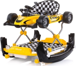 A CHIPOLINO Car Racer 4 az 1-ben egy okosan megtervezett járássegítő, amely együtt nő gyermekével. A háromféle magasságállításnak, a széles alapnak és a hat biztonsági ütközőnek köszönhetően magabiztosságot nyújt a tér felfedezése közben. A versenyautó formájú, szórakoztató panel egyszerűen levehető és tolható kisautóvá alakítható, amely tovább motivál a mozgásra.