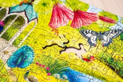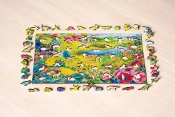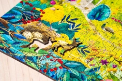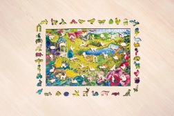 Ez az egyedülálló puzzle fából készül kiváló minőségű színes nyomtatással. Minden darab teljesen egyedi alakú, izgalmas építést biztosítva. Itt találhatók darabok, amelyek az igazi állatokat, virágokat és más tárgyakat idézik a való életből.
