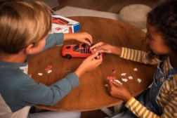 Élje át az összeillesztés és az építés egyedülálló kombinációját, és készítsen lenyűgöző Dodge Challenger R/T Scat Pack Widebody modellt ikonikus piros színben, 108 darabból. Minőségi, műanyag puzzle Easyclick technológiával. Ragasztás nélkül! Működő, forgó kerekekkel.