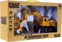 | | A kotrógép minden kis építő álma. Masszív kivitel, élénk színek, minőségi műanyag. A jármű előre és hátra halad, jobbra és balra kanyarodik. Menet közben hallható a gép hangja. Hátramenetben visszajelző hang hallható. A kotrógép forgatható felépítménye és karja (360 fok) ás, fel-le mozog, távirányítóval vezérelhető. Kürt hang, vidám zene. A markoló 2,4 GHZ frekvencián működik. A játék 3 éves kortól ajánlott, CE tanúsítvánnyal rendelkezik. Környezetbarát, bőrönd típusú csomagolás hordfogantyúval. | A készlet tartalma | - Kotrógép (4,8 V típusú akkumulátorral működik – a csomag tartalmazza), - távirányító (2 x AA típusú elemmel működik – nem tartozék), - USB kábel, - 2x figyelmeztető tábla, - 2x bója. | Méretek | |