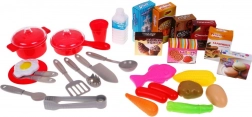 - 58 darabos tartozék: edények, eszközök, zöldségek, tojás, hal, virsli és papírdobozos „élelmiszerek”.