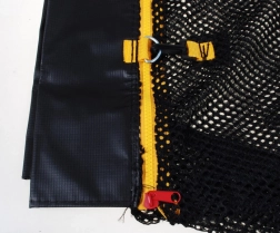 A megbízható SkyRamiz védőháló ugrálás közben a gyerekeket és a felnőtteket is biztonságban tartja. A háló magasabb grammsúlyú, minőségi PE anyagból készül, így ellenáll az időjárásnak és a mechanikai igénybevételnek. A színesen kiemelt kétirányú cipzár javítja a bejárat láthatóságát, és megkönnyíti a nyitást-zárást.