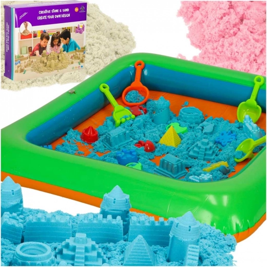 Kinétikus homok 1 kg felfújható homokozóval és kiegészítőkkel